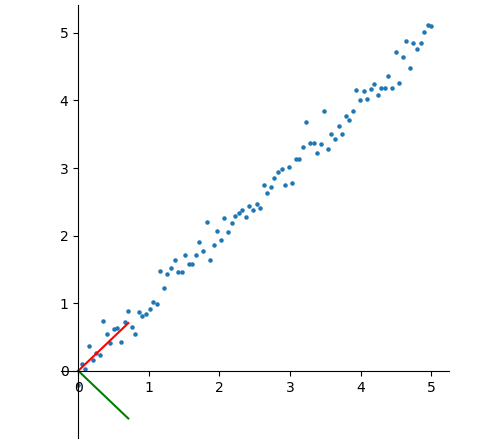 Since this is a 2-dimensional dataset, n=2. The first step is to find the new set of basis functions (a & b). In the explanation above, we saw that the dataset had the maximum variance along a line and we manually chose that line as a-axis and the line the perpendicular to it as b-axis. In practice, we want this step to be automated.
