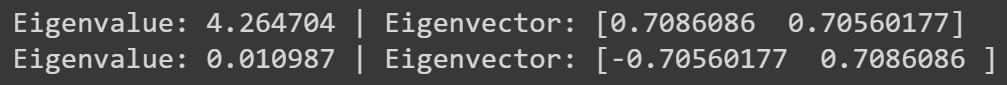 To accomplish this, we can find the eigenvalues and eigenvectors of the covariance matrix of the dataset. Since the dataset is 2 dimensional, we will get 2 eigenvalues and their corresponding eigenvectors. Then, the 2 eigenvectors are two basis functions (new axes) and the two eigenvalues tell us the variance contribution of the corresponding eigenvectors. A large value of eigenvalue implies that the corresponding eigenvector (axis) contributes more towards the total variance of the dataset.