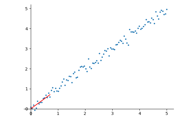 If we notice closely, we can very well see that the data approximates a line as shown by the red line below.