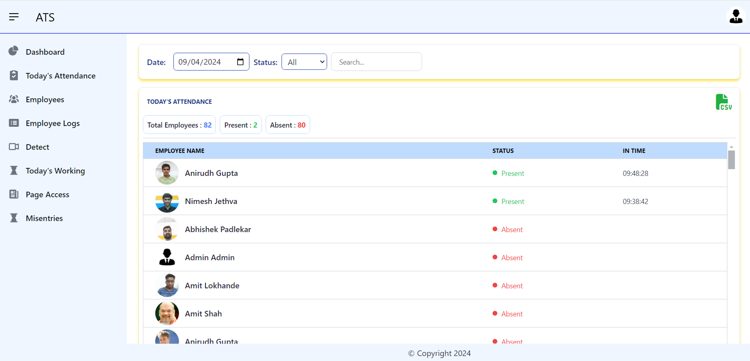 - Generates attendance reports with filtering options (daily, weekly, monthly).